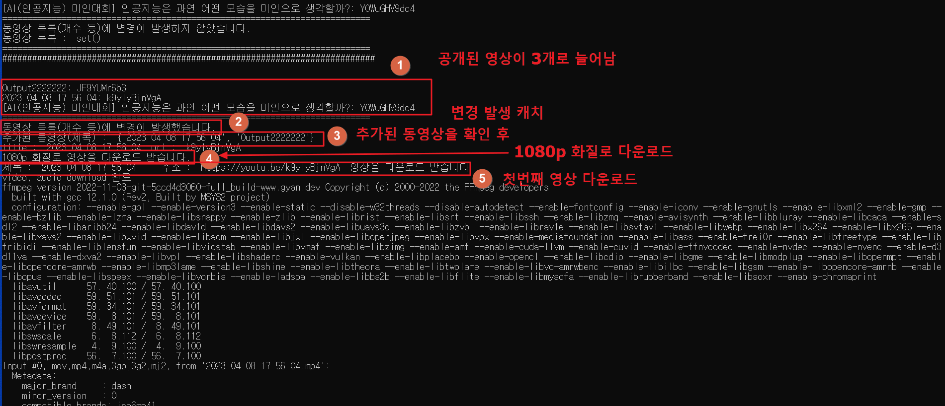 | 파이썬 유튜브 새로운 영상 올라오면 알림 및 실시간 다운로드하기 - 3.변경 사항 체크하기 (0) | 2023.06.09 |