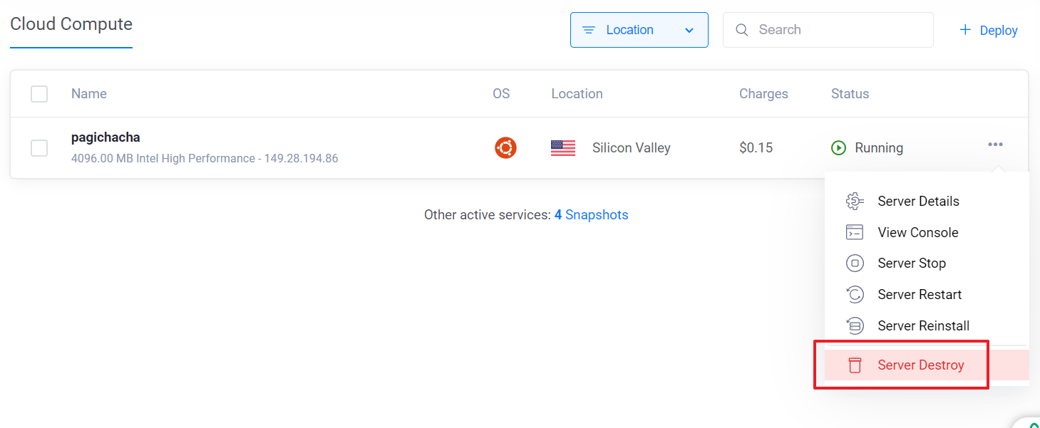 26.참고로 클라우드의 경우 아래와 같이 "Server Destroy"를 해주어야 추가 비용이 청구되지 않으니 반드시 참고하여 주시기 바랍니다.