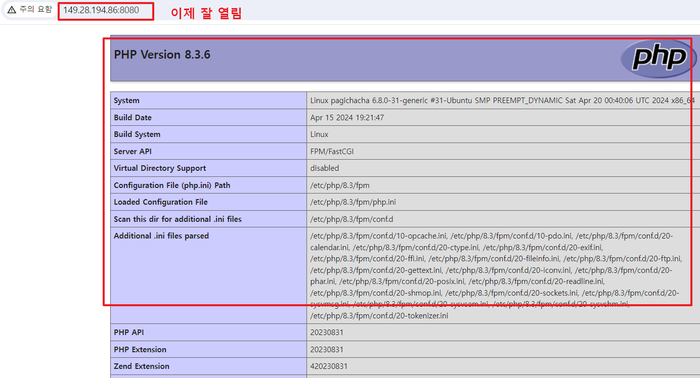 14. 이번에는 웹서버인 NGINX를 설치하고, PHP에서 제공하는 기본 페이지인 phpinfo()를 보여줄 수 있도록 웹서버까지 구동해 달라고 요청하였습니다.