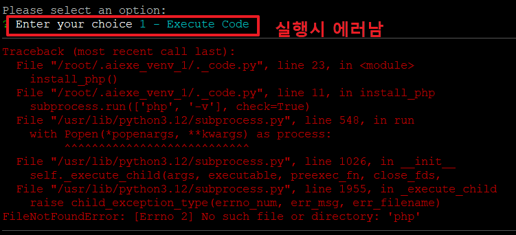 6. 다시 aiexe를 실행합니다. 여기서는 aiexe가 루트 권한이 필요할 수 있으므로 sudo를 사용하여 실행해 줍니다.